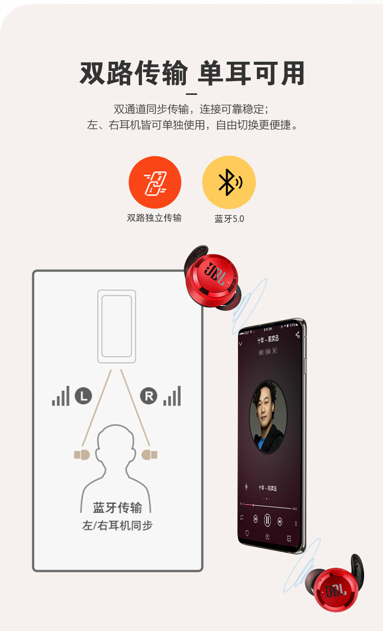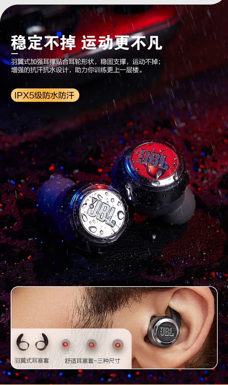JBL(JBL) T280TWS X 真无线蓝牙耳机 入耳式防水防汗音乐运动跑步耳机 通话降噪耳机 适用苹果安卓手机 枫叶红