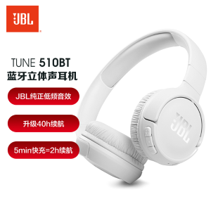 JBL(JBL) TUNE 510BT头戴式蓝牙无线音乐耳机 运动耳机+游戏耳机 象牙白